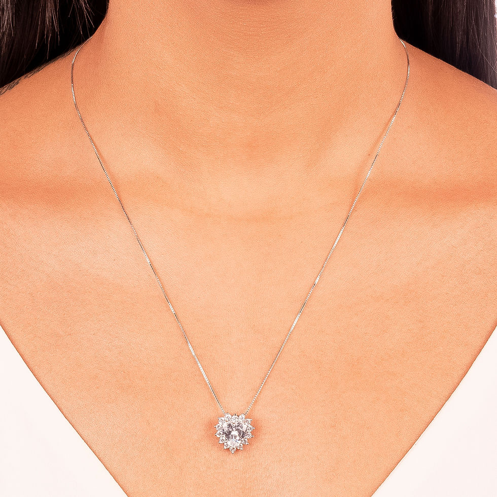 Conjunto Coração Raio Turmalina - Ródio Branco