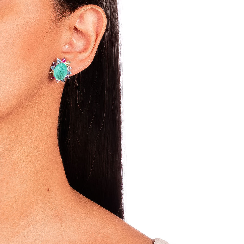 Conjunto Oval Turmalina Color - Ródio Branco