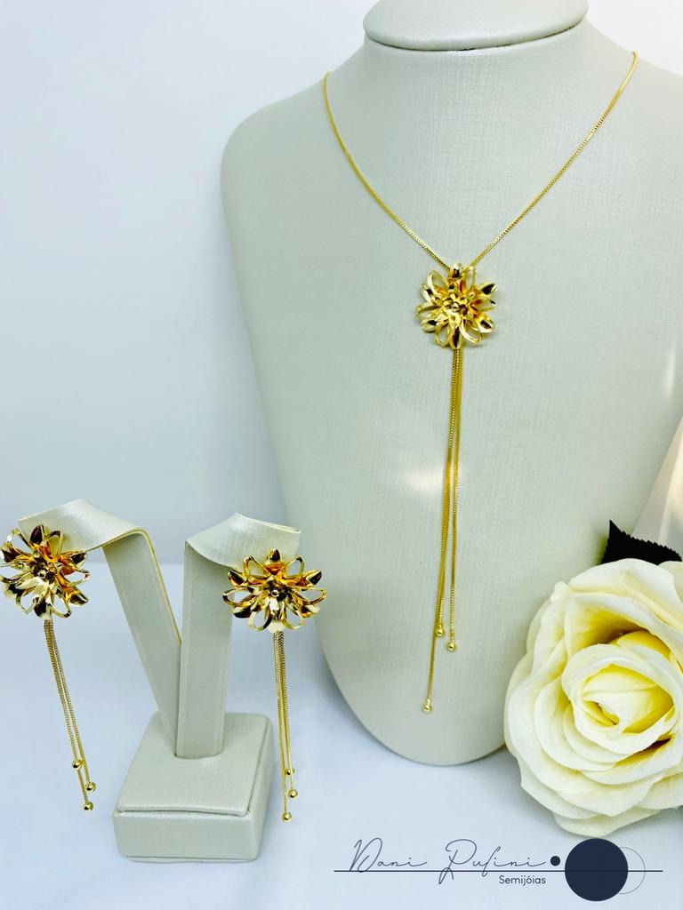 Conjunto Flor com Pingos de Veneziana - Ouro